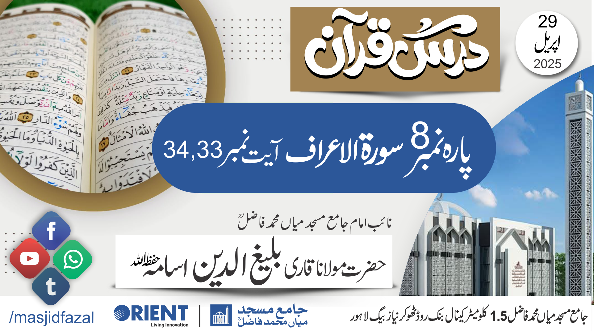 اسلامک سنٹر اینڈ جامع مسجد میاں محمد فاضلؒ کا سوشل میڈیا پر اپلوڈ ہونے والی ویڈیوز